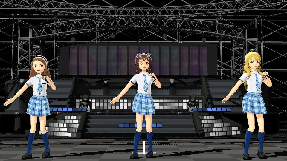 このとき、MMDをキャプチャ素材に近づけようとするよりMMDであればMMDならではというところをより活かそうとするアプローチが正解ではあると思うのですが、もちろんそれはそれであるのですけど、私の場合MMDのすごい動画を作ろうMMDを追求しよう的なものではなく、アイマスのアイドル達でこんな動画あんな動画をつくろう(MMDはそのツール)というのが基本的な感覚ですので、ここは従来のキャプチャ素材のニコマスをする感覚と変わりません。