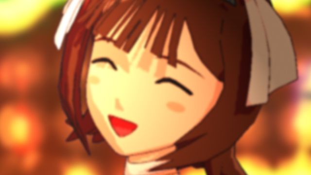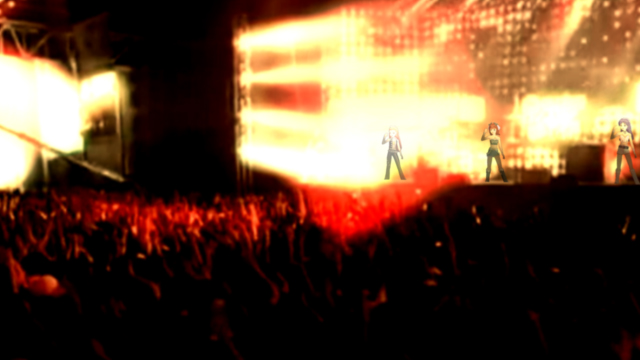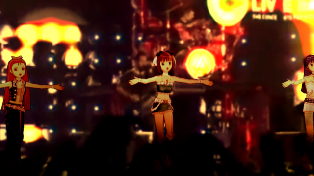 このシーンでは、アイドルたちの透明度をいじって幾分透過させて、背景に馴染ませてます。小さいから透けててもわかんない、だいじょうぶ。