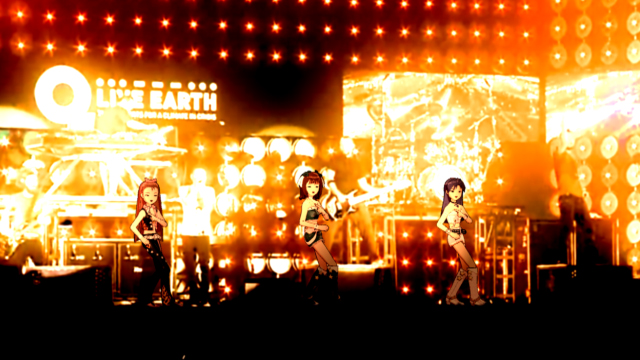 最初はこのステージ映像に、元動画で千早のアップが横から出てきてかぶさるのもパクろうと思ったんです(おい。