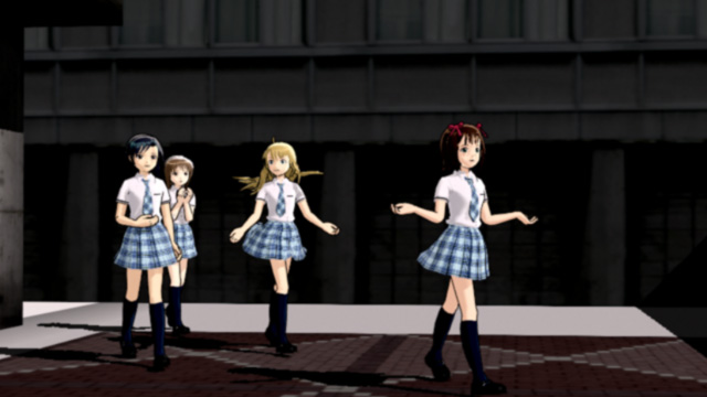 というわけで冒頭の登校シーン。ここではテクスチャがふんだんに使われてるケロリン町ステージを使ってます。ケロリン町は思いっきり昭和のそれも蒲田みたいなイメージで本来合わないのですが・・・・って蒲田みたいと書いたらそれならトレインスポッティングっぽいなって気もしてきたw