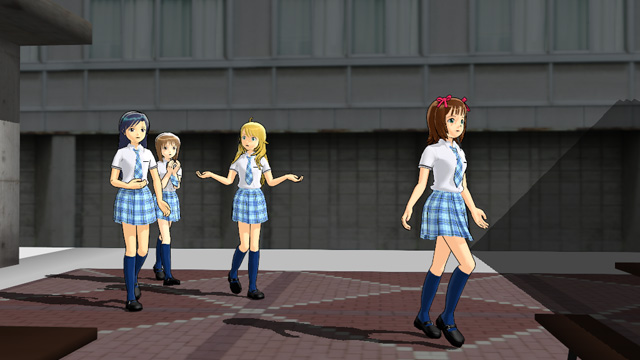 このとき、MMDをキャプチャ素材に近づけようとするよりMMDであればMMDならではというところをより活かそうとするアプローチが正解ではあると思うのですが、もちろんそれはそれであるのですけど、私の場合MMDのすごい動画を作ろうMMDを追求しよう的なものではなく、アイマスのアイドル達でこんな動画あんな動画をつくろう(MMDはそのツール)というのが基本的な感覚ですので、ここは従来のキャプチャ素材のニコマスをする感覚と変わりません。